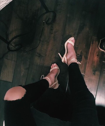 My aunt gave me these really cute lace up heels & I wore them with my black high waisted jeans and a black bodysuit and cardigan. 🙂